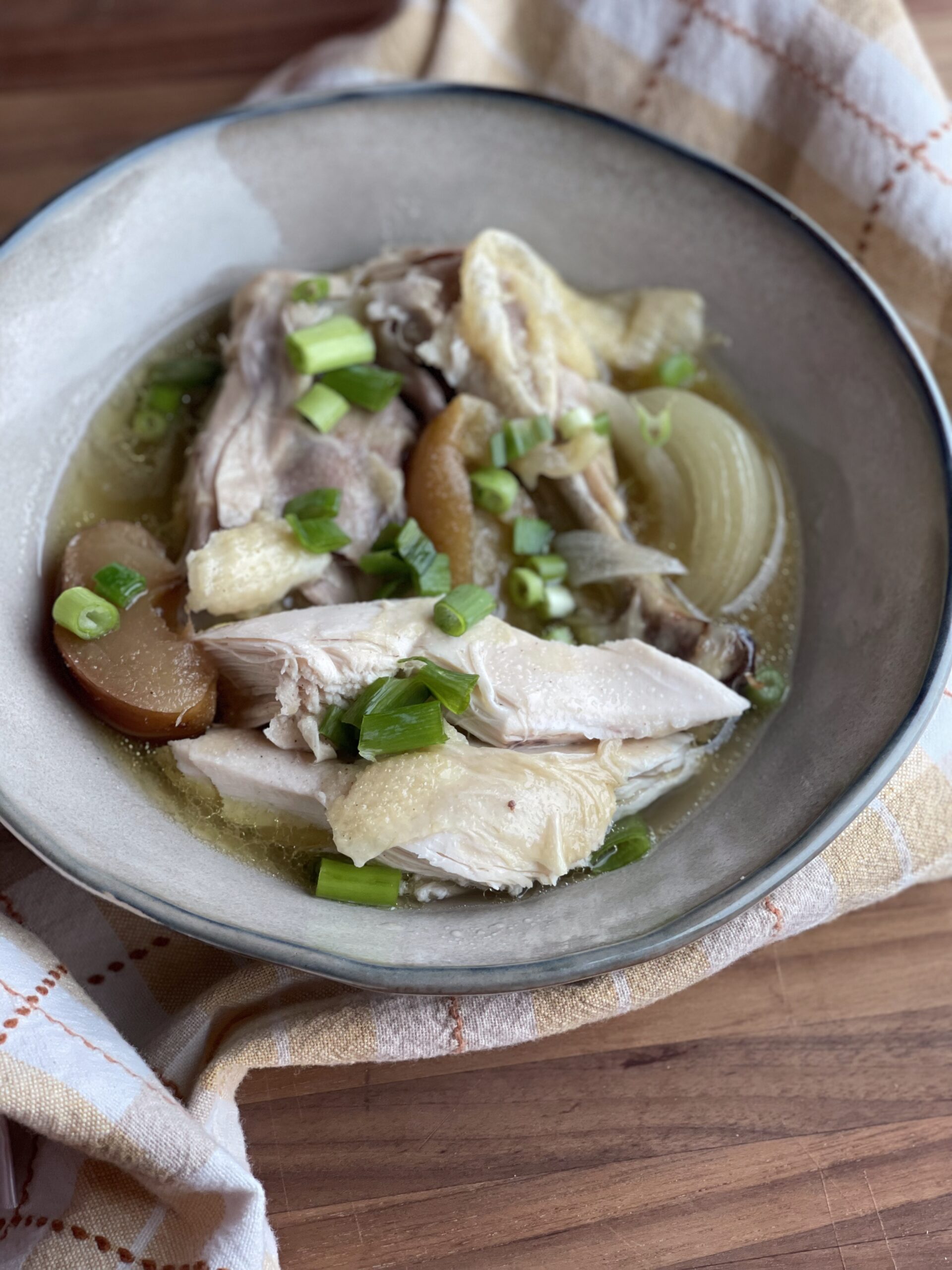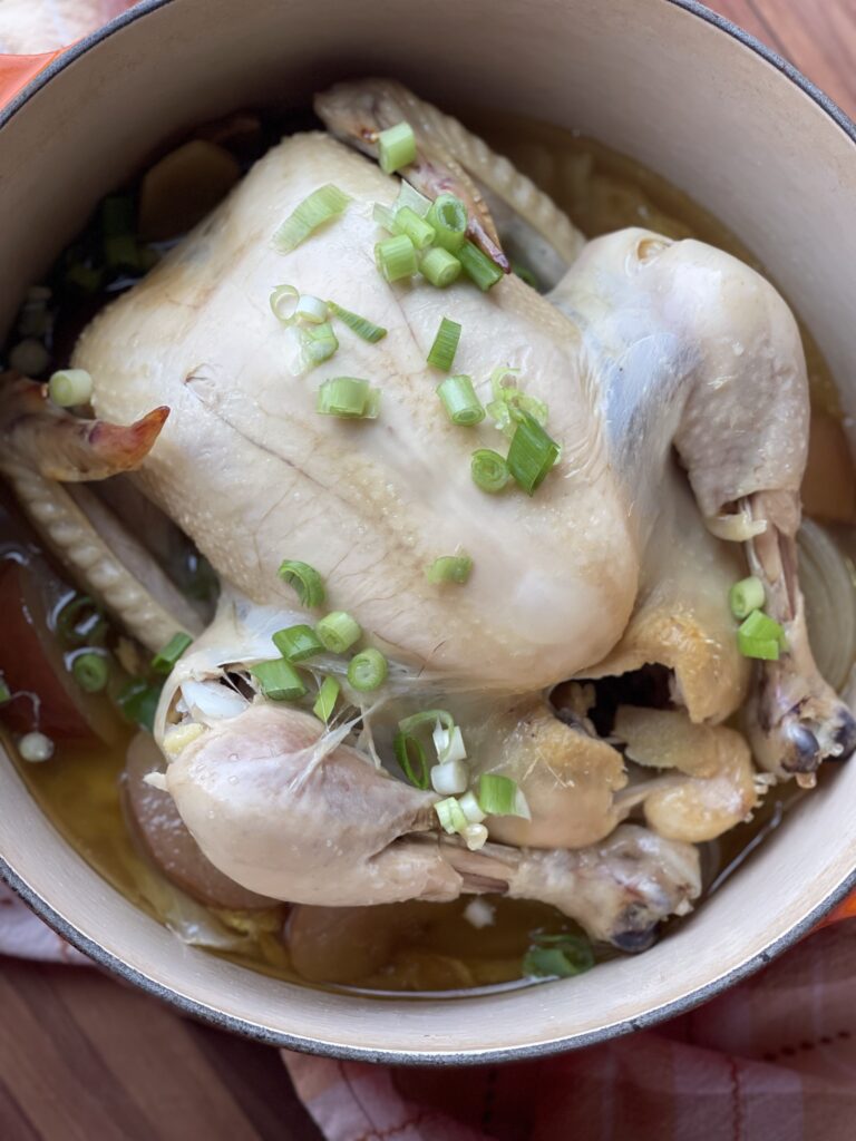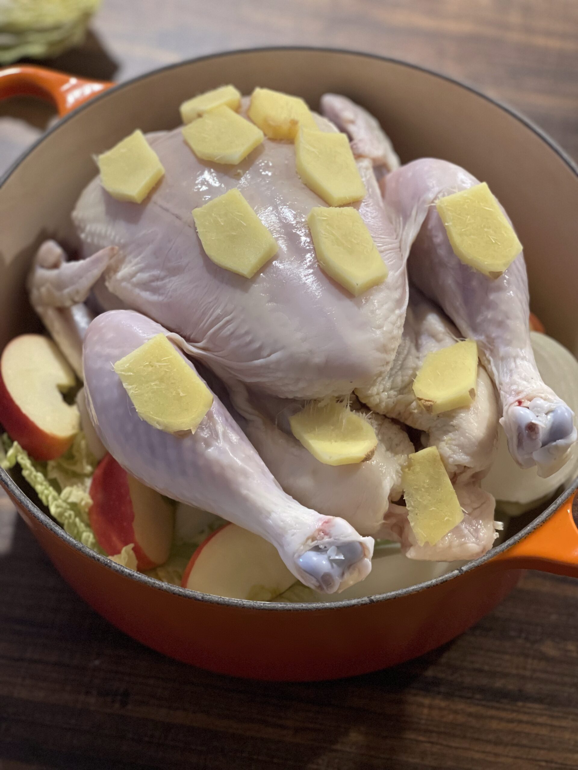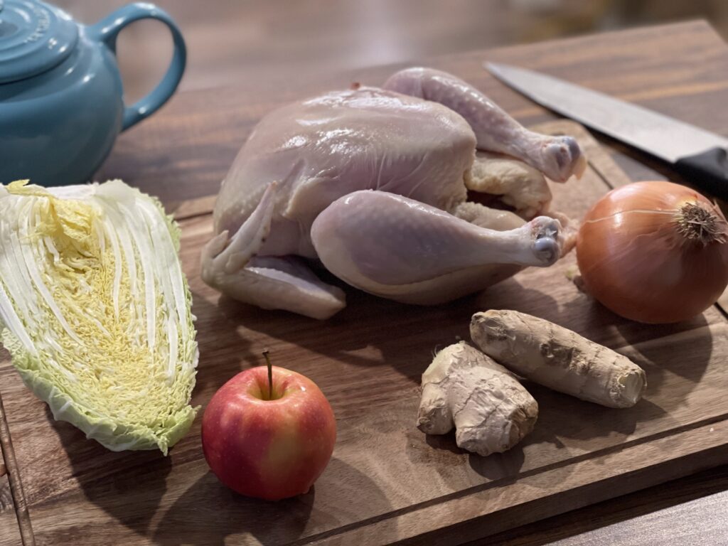 The chicken becomes meltingly tender, the ginger perfumes the broth, and the apple adds the faintest natural sweetness that makes the soup taste gentle and restorative.