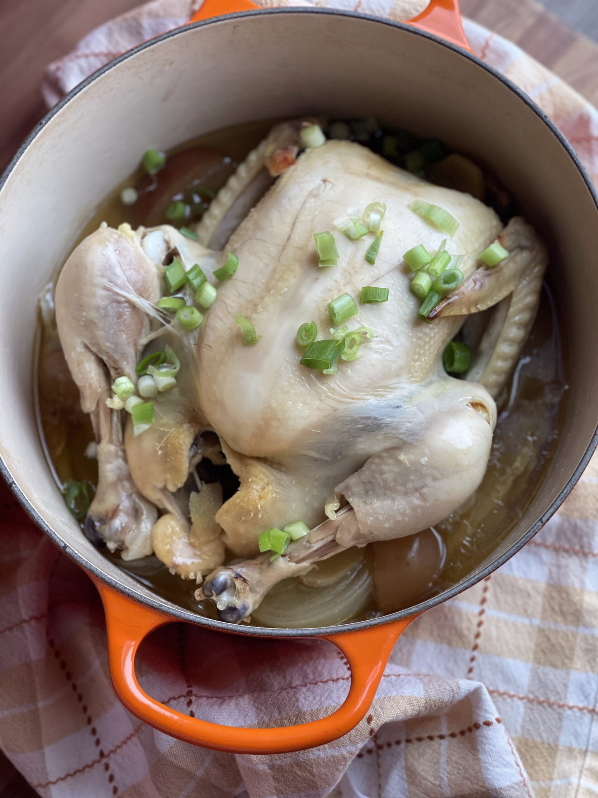 Remove from the oven. The chicken should be extremely tender and the pot filled with golden broth.